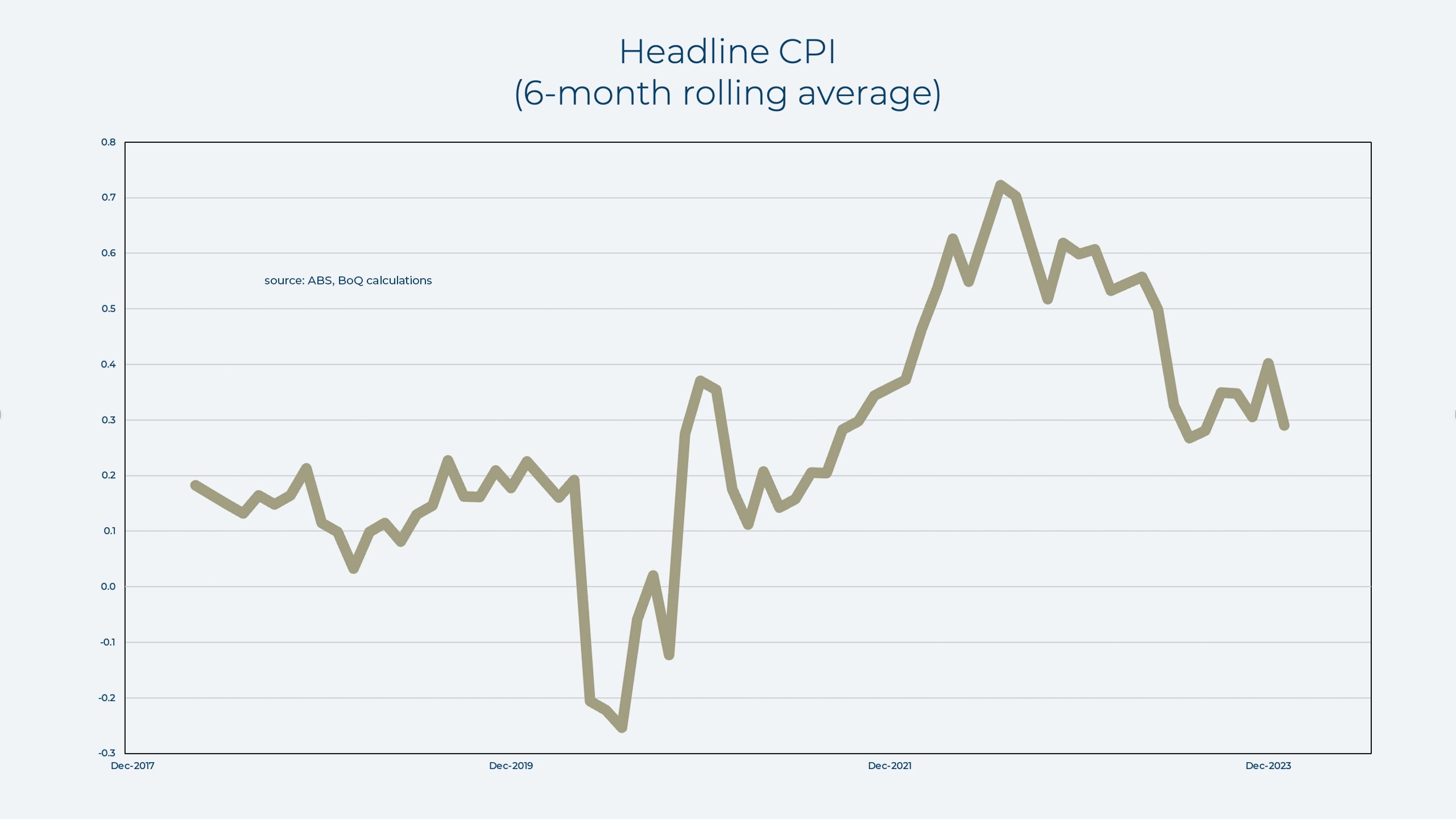Inflation declined sharply in 2023. Demand slowed given the crunch to household disposable incomes and the end of revenge spending. Supply has risen, reflecting improved worker availability and the end to global supply-chain snarls (despite the recent problems in the Red Sea).